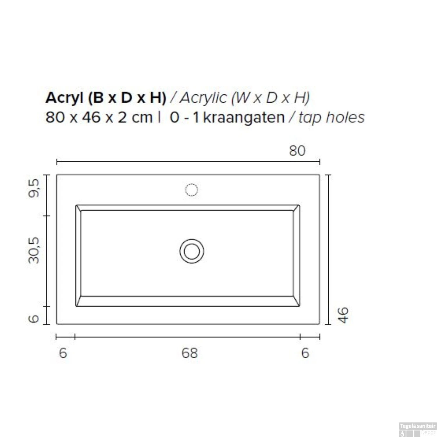 - Materiaal wastafel: Acryl