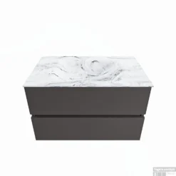 Badkamermeubel BWS Madrid Carrara Mat 80 cm Solid Surface Wastafel (0 kraangaten, 2 lades)
