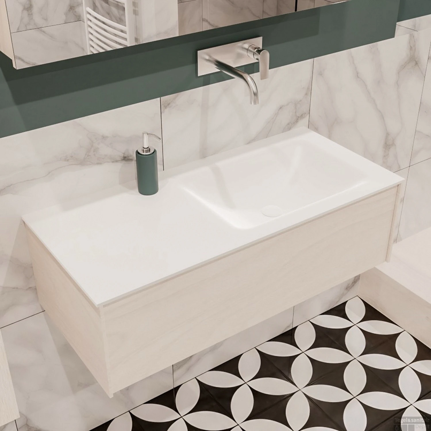 Badkamermeubel BWS Madrid Wit 100x45x30 cm Mat Witte Solid Surface Wastafel Rechts (0 kraangaten)