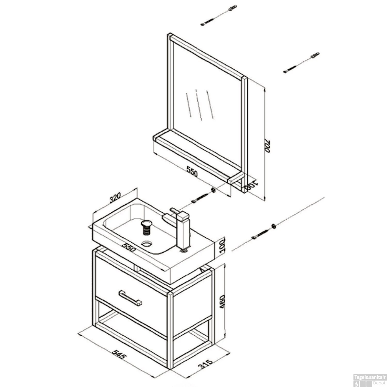 Let op: Het meubel wordt geleverd exclusief spiegel, afvoer, sifon en kraan. Deze kunt u naar wens toevoegen.