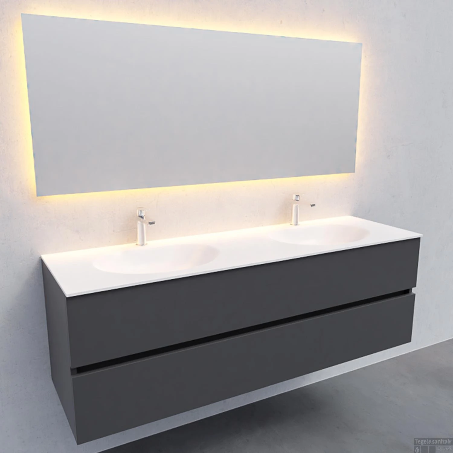 Badkamermeubel Solid Surface BWS Stockholm 150×46 cm Dubbel Mat Antraciet (met 2 kraangaten)