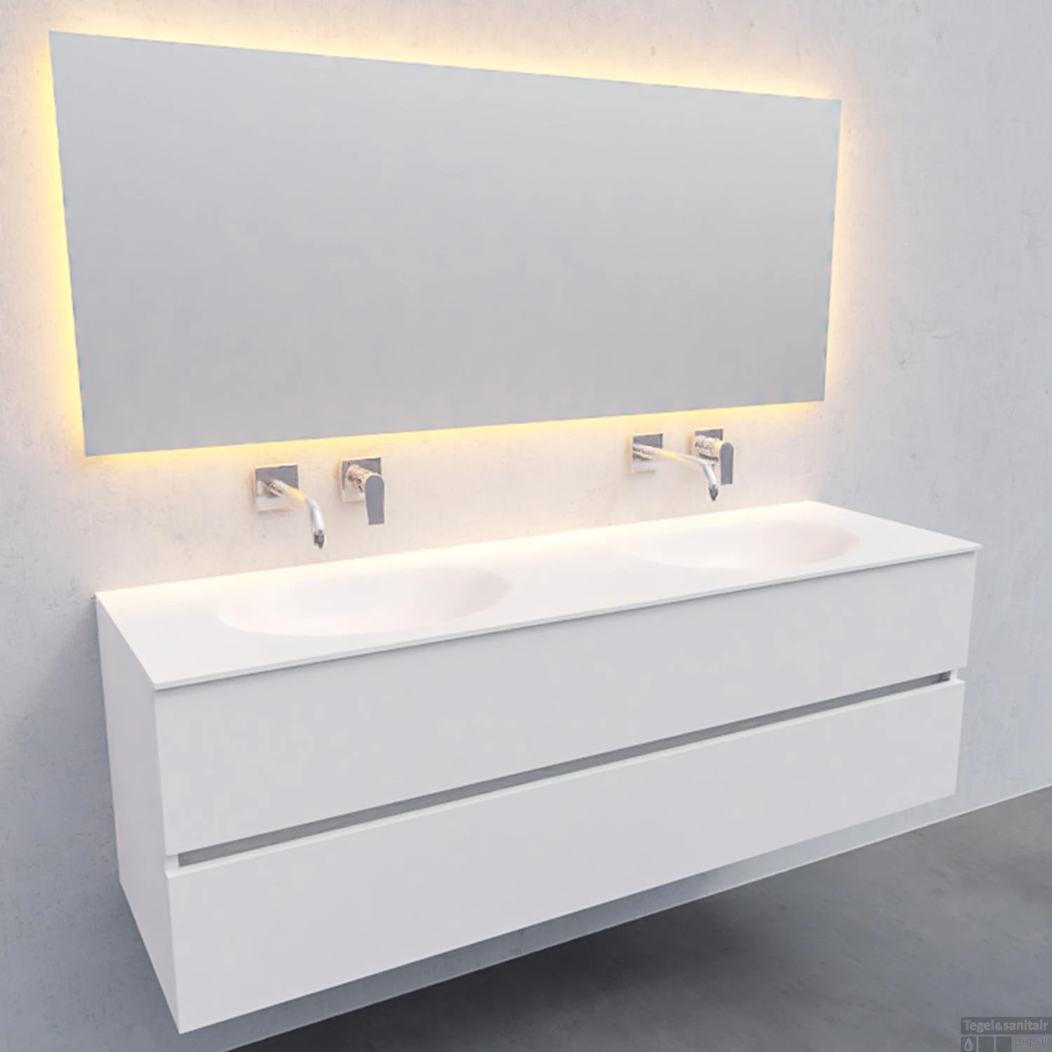 Badkamermeubel Solid Surface BWS Stockholm 150×46 cm Dubbel Mat Wit (zonder kraangat)