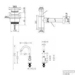 B&w-luxury Fortuna Fonteinmeubel Deur Rechts Fontein-kraan-sifon-plug Grijs Eiken 50