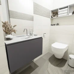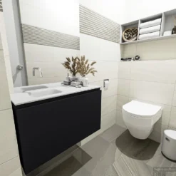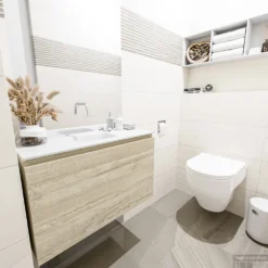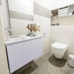 MONDIAZ OLAN 80cm Toiletmeubel Light Brown Grey. LEX Wastafel Talc Midden Geen Kraangat