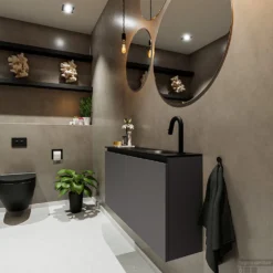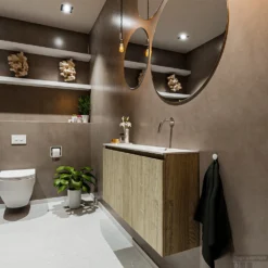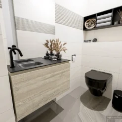 MONDIAZ OLAN 80cm Toiletmeubel Light Brown Grey. LEX Wastafel Urban Links 1 Kraangat