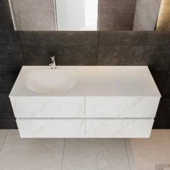 Badkamermeubel BWS Valencia Carrara Mat 120 Cm Solid Surface Wastafel Links (1 Kraangat, 4 Lades)