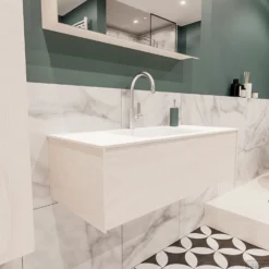 Badkamermeubel BWS Madrid Wit 80x45x30 Cm Mat Witte Solid Surface Wastafel (1 Kraangat)