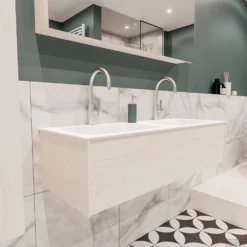 Badkamermeubel BWS Madrid Wit 120x45x30 Cm Mat Witte Solid Surface Wastafel Dubbel (2 Kraangaten)