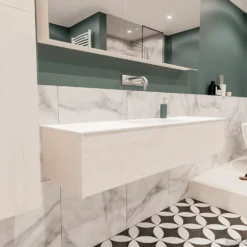 Badkamermeubel BWS Valencia Carrara Mat 120 Cm Solid Surface Wastafel (1 Kraangat, 2 Lades)