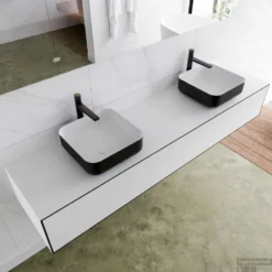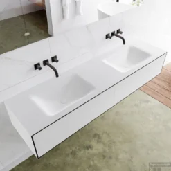 Badkamermeubelset Mondiaz LAGOM 160 Cm Linkse Waskom Solid Surface Met 1 Kraangat Mat Wit (2 Laden)