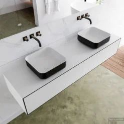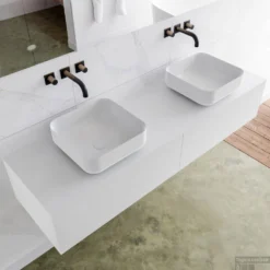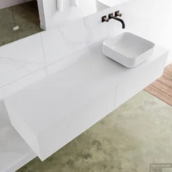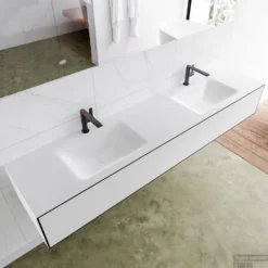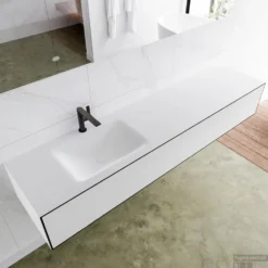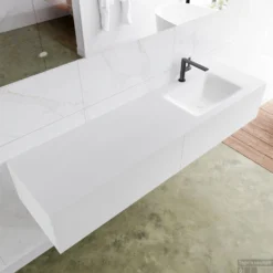 Badkamermeubelset Mondiaz LAGOM 170 Cm Rechtse Waskom Solid Surface Met 1 Kraangat Mat Wit (2 Laden)