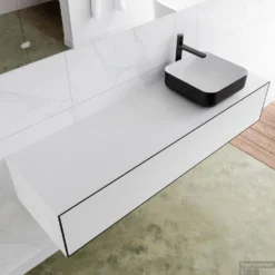 Badkamermeubelset Mondiaz LAGOM 150 Cm Linkse Waskom Solid Met 1 Kraangat Mat Wit (1 Lade)