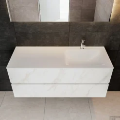 Badkamermeubel BWS Valencia Carrara Mat 120 Cm Solid Surface Wastafel Rechts (1 Kraangat, 2 Lades)
