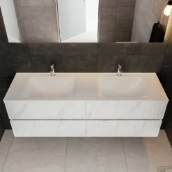 Badkamermeubel BWS Valencia Carrara Mat 200 Cm Solid Surface Wastafel Rechts (1 Kraangat, 4 Lades)