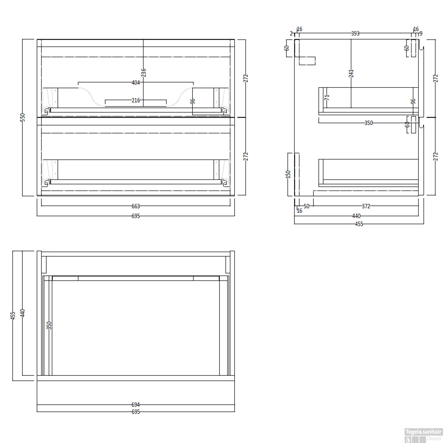 Let op: De topplaat wordt geleverd zonder afvoer/kraangaten. Dit geeft u de mogelijkheid om zelf te bepalen waar u de waskom plaatst. Daarnaast zorgt dit ervoor dat u de keuze kunt maken om een inbouw kraan te combineren met het meubel.