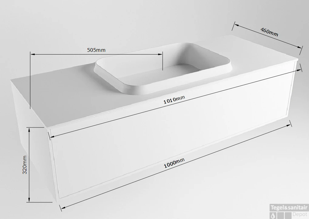 - Positie wastafel: midden