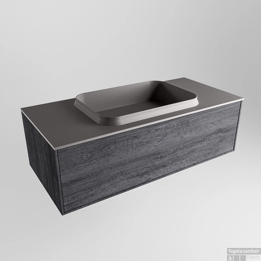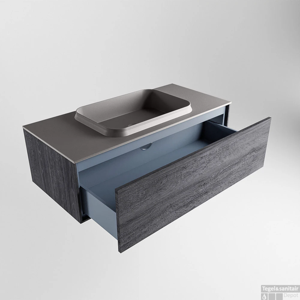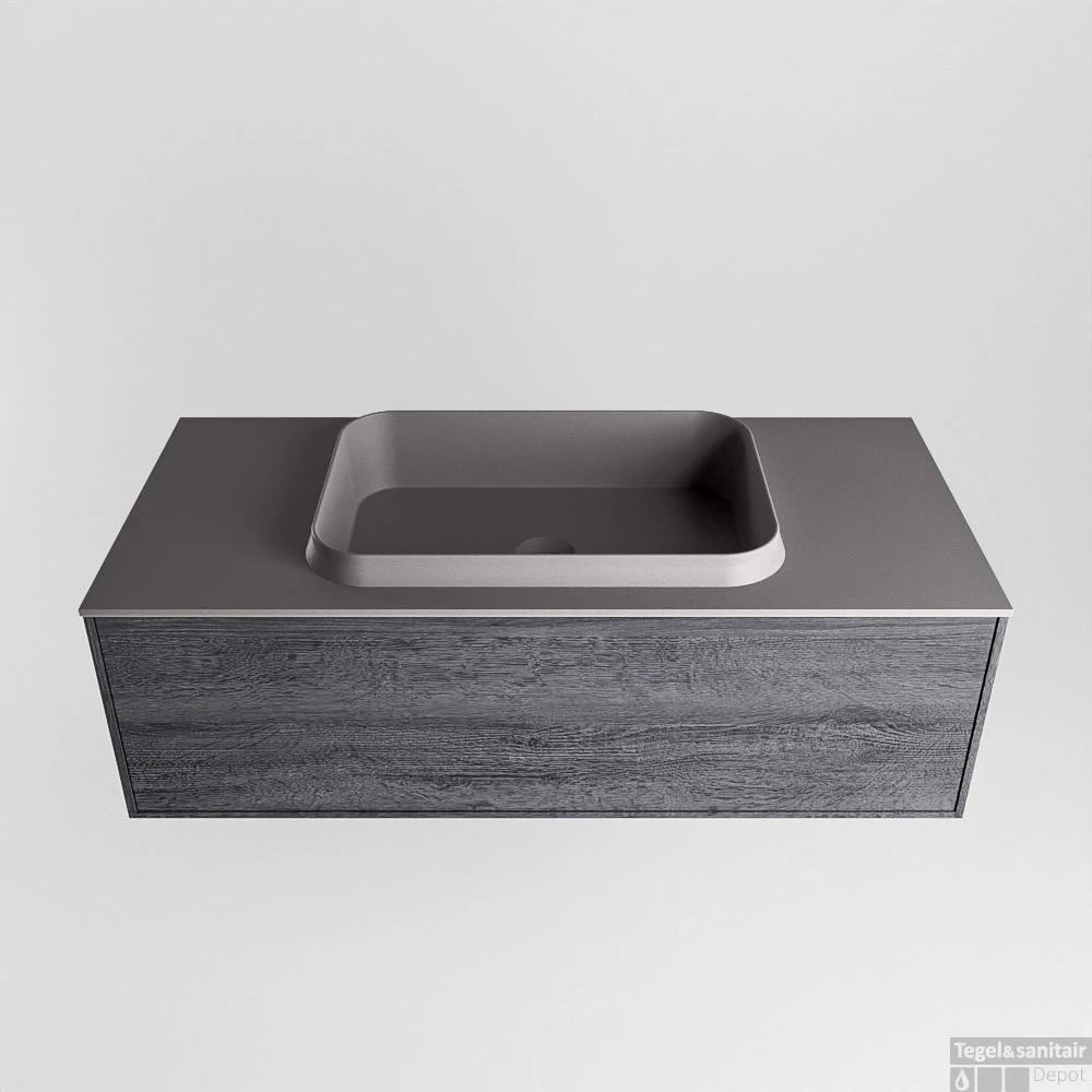 Badkamermeubelset Mondiaz Erin 100 cm met 1 Lade met RIDGE Wastafel Midden Dark grey met 1 kraangat Greeploos Mat Antracite