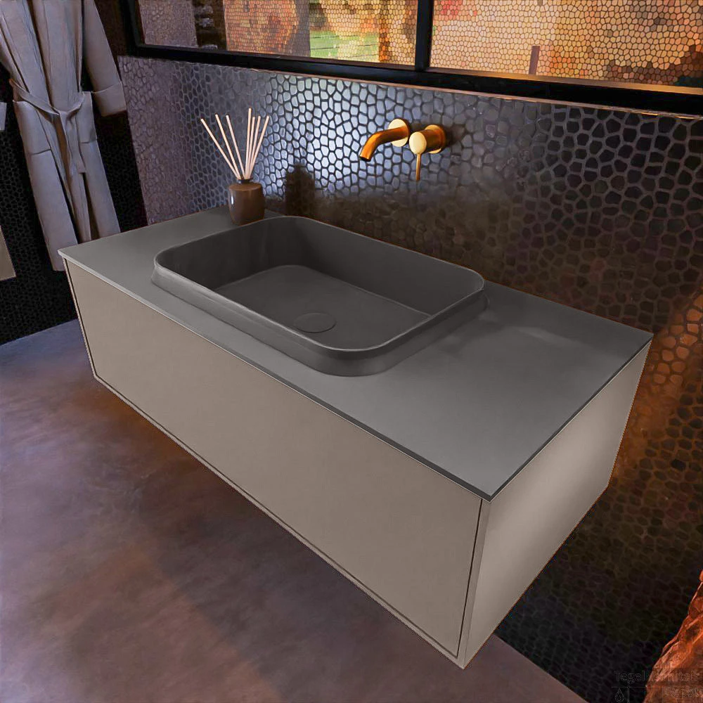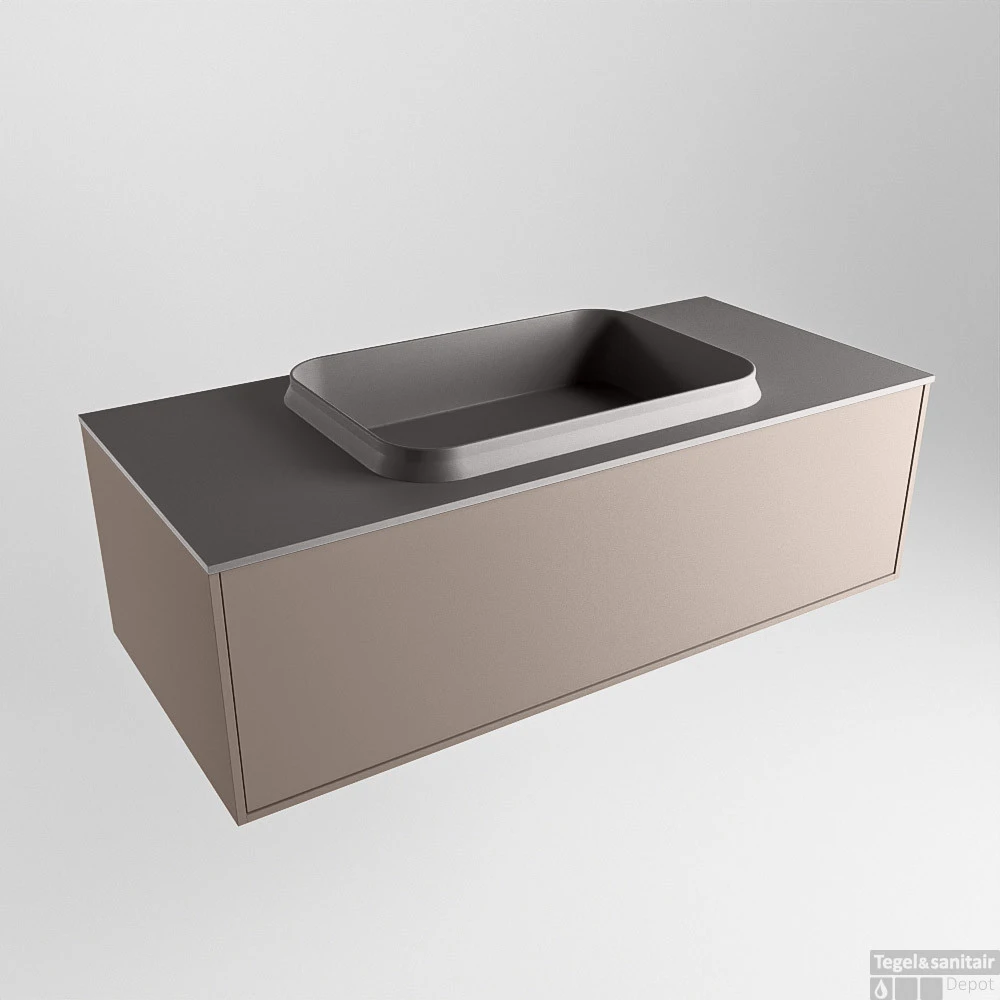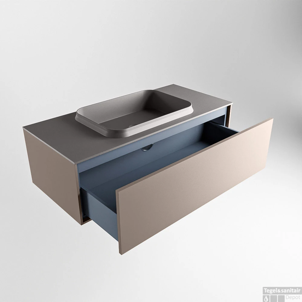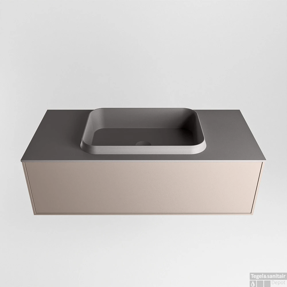 Badkamermeubelset Mondiaz Erin 100 cm met 1 Lade met RIDGE Wastafel Midden Dark grey Zonder Kraangaten Greeploos Mat Smoke