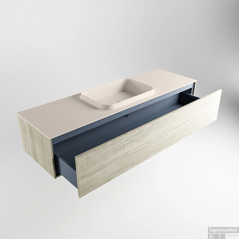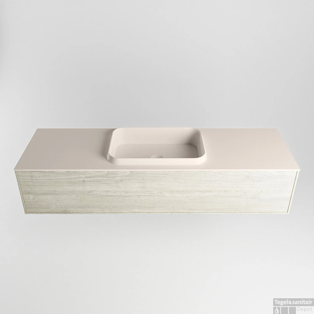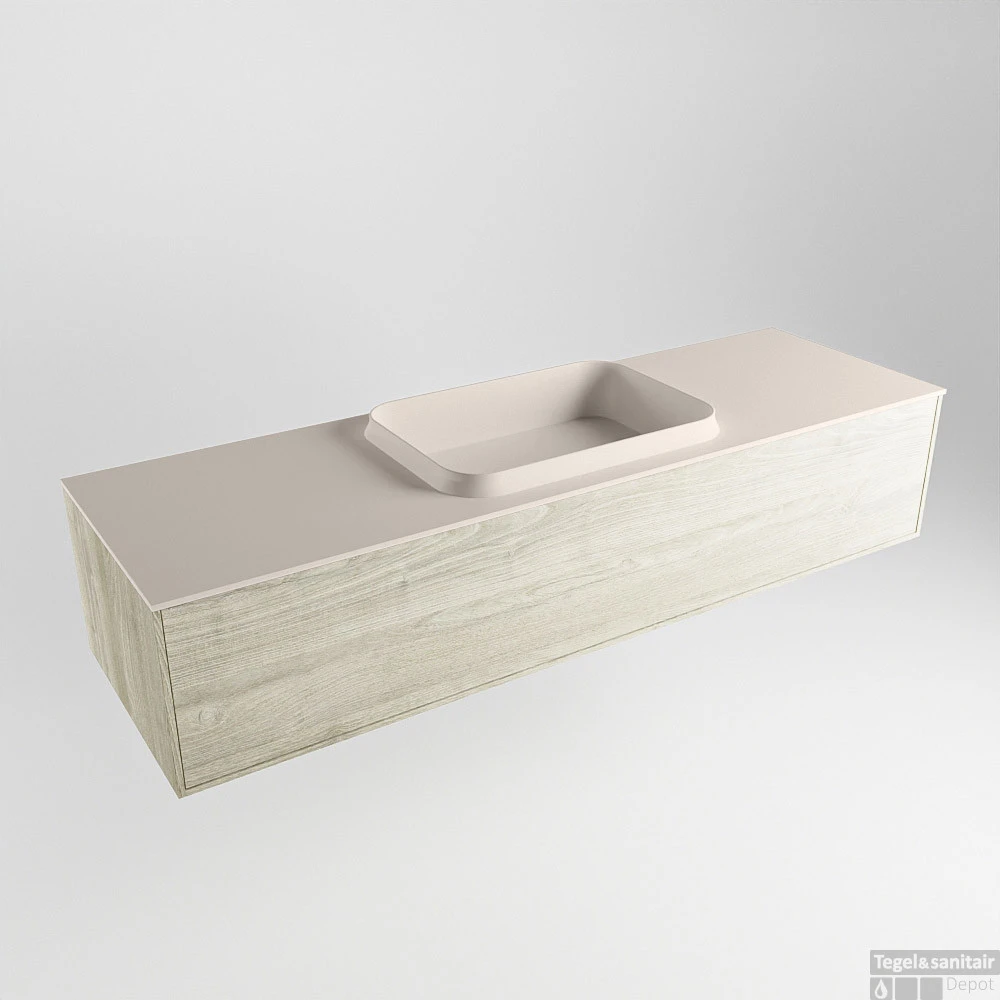 Badkamermeubelset Mondiaz Erin 150 cm met 1 Lade met RIDGE Wastafel Midden Linen met 1 kraangat Greeploos Mat Light brown grey