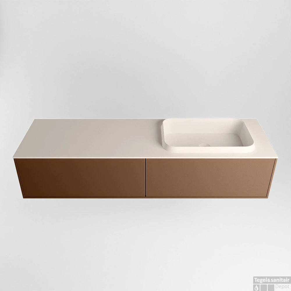 Badkamermeubelset Mondiaz Erin 150 cm met 2 Lades met RIDGE Wastafel Rechts Linen Zonder Kraangaten Greeploos Mat Rust
