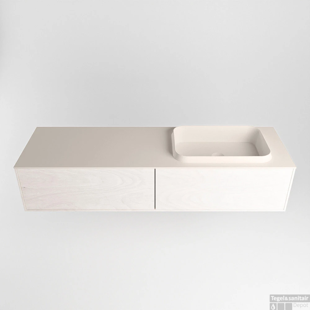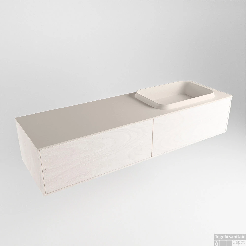 Badkamermeubelset Mondiaz Erin 150 cm met 2 Lades met RIDGE Wastafel Rechts Linen Zonder Kraangaten Greeploos Mat Underlayment
