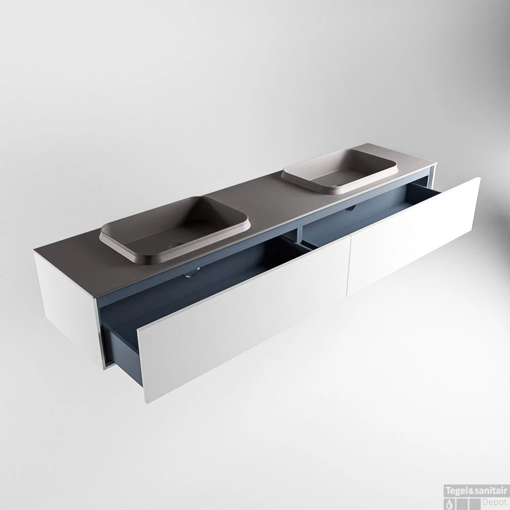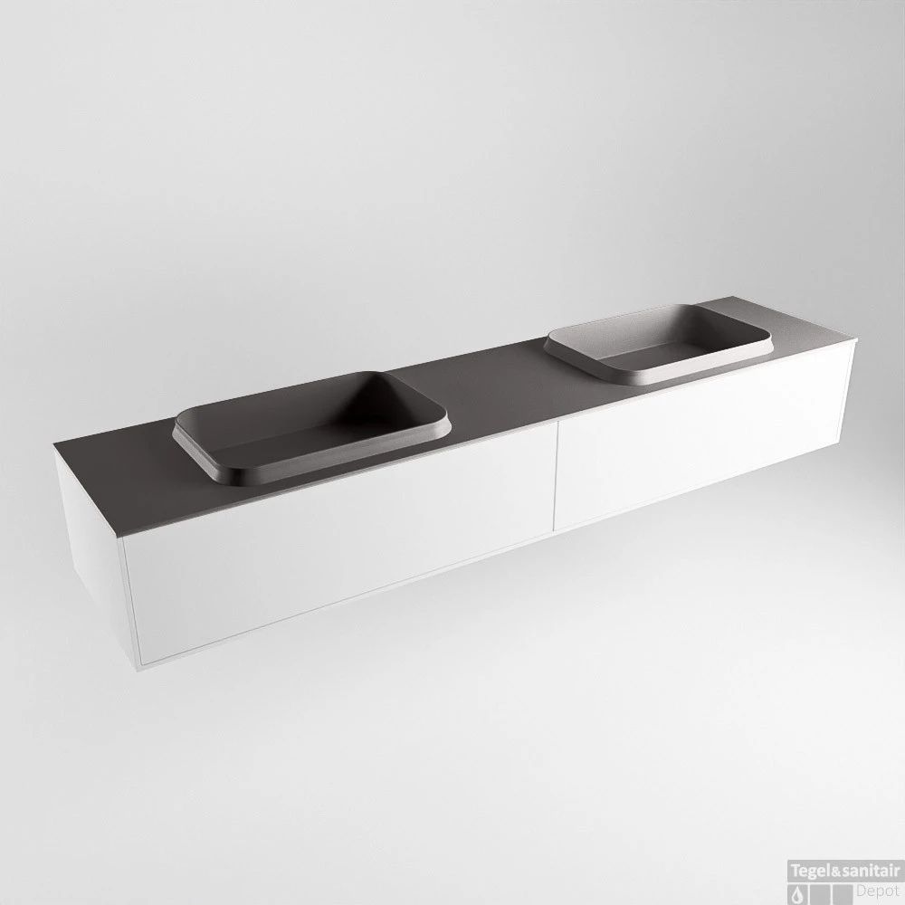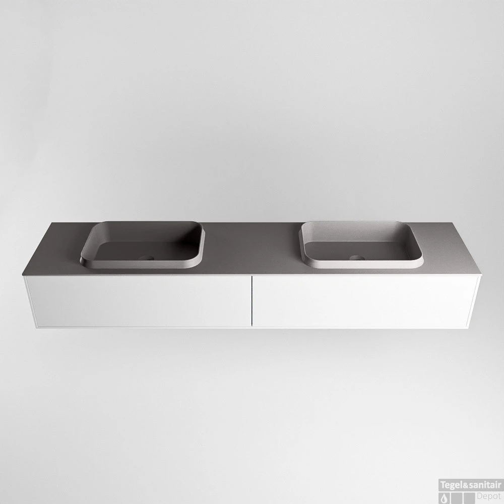 Badkamermeubelset Mondiaz Erin 200 cm met 2 Lades met RIDGE Wastafel Dubbel Dark grey met 2 kraangaten Greeploos Mat Talc