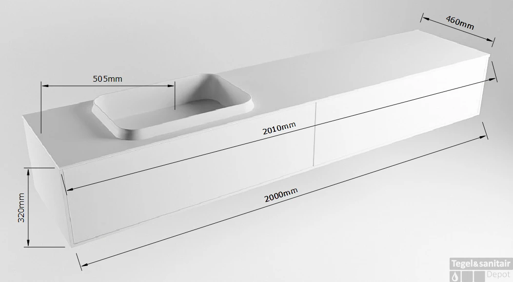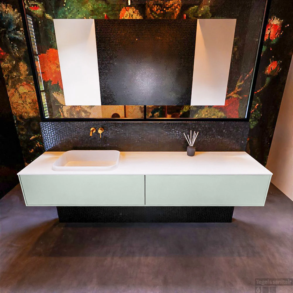 Badkamermeubelset Mondiaz Erin 200 cm met 2 Lades met RIDGE Wastafel Links Talc Zonder Kraangaten Greeploos Mat Greey