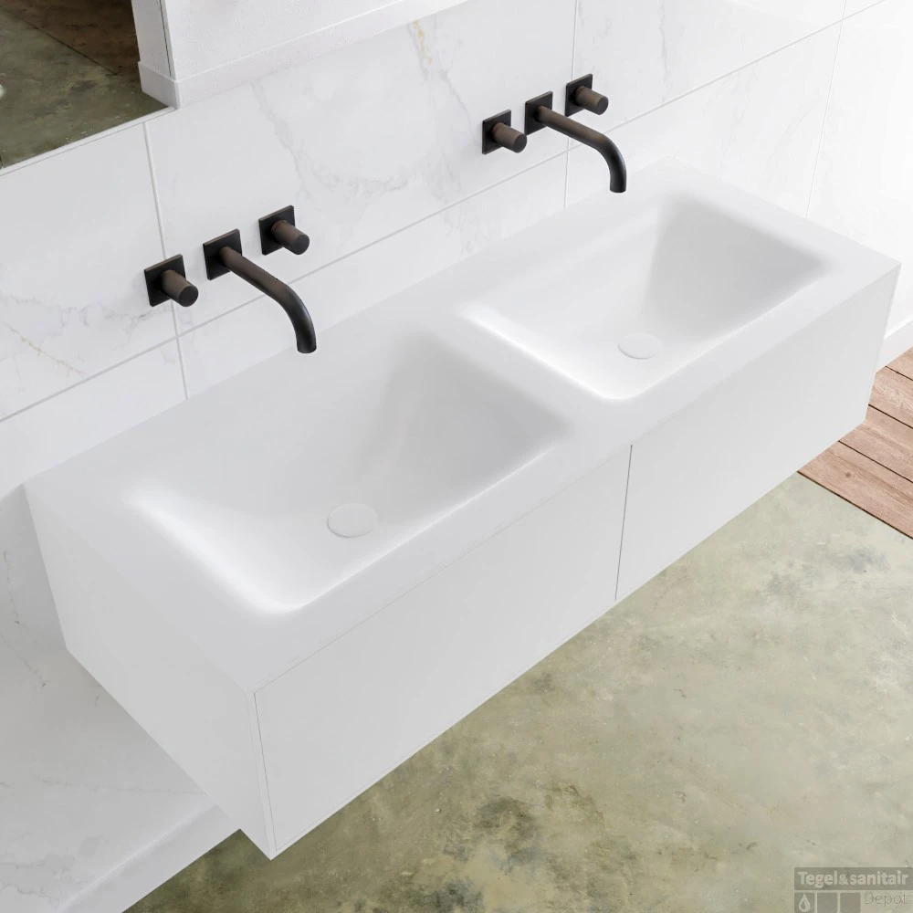 Badkamermeubelset Mondiaz LAGOM 120 cm Dubbele Waskom Solid Surface Zonder Kraangaten Mat Wit (2 laden)
