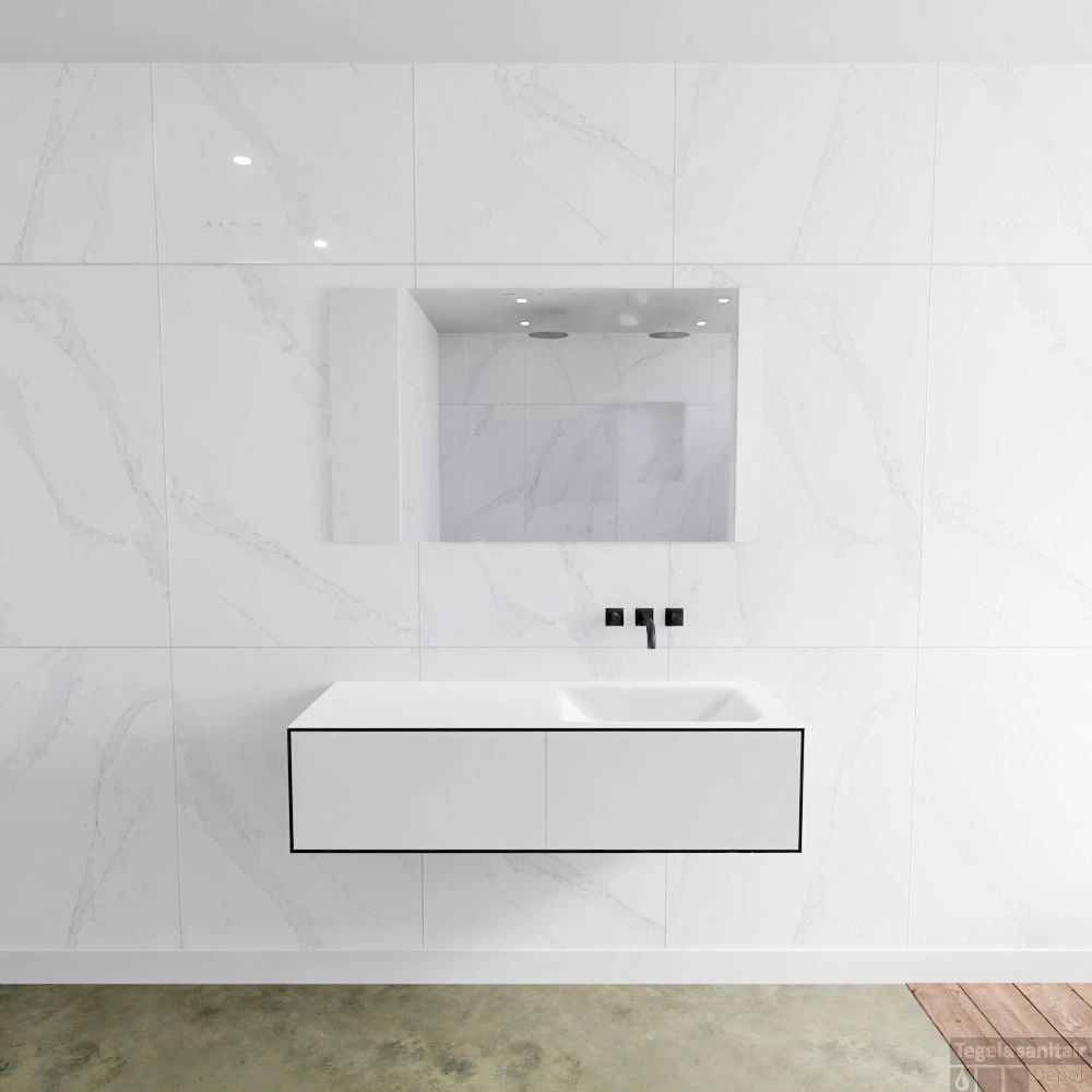Badkamermeubelset Mondiaz LAGOM 120 cm Rechtse Wastafel Solid Surface Zonder Kraangaten Mat Zwart (2 laden)