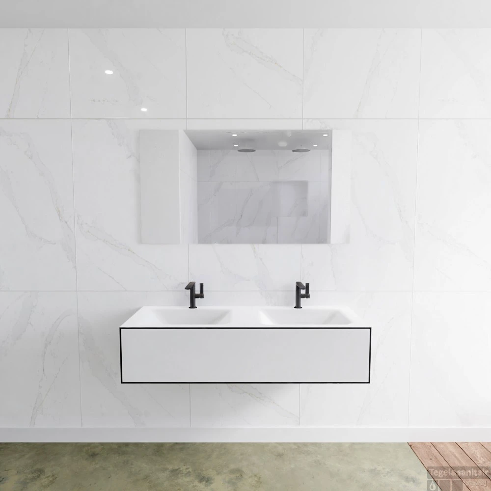 Badkamermeubelset Mondiaz LAGOM 130 cm Dubbele Wastafel Solid Surface Met 2 Kraangaten Mat Zwart (1 lade)