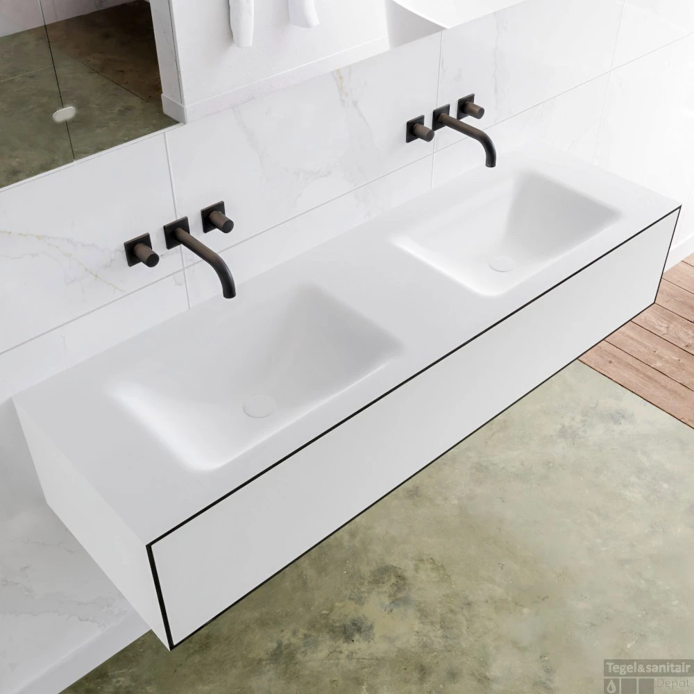 Badkamermeubelset Mondiaz LAGOM 150 cm Dubbele Wastafel Solid Surface Zonder Kraangaten Mat Zwart (1 lade)
