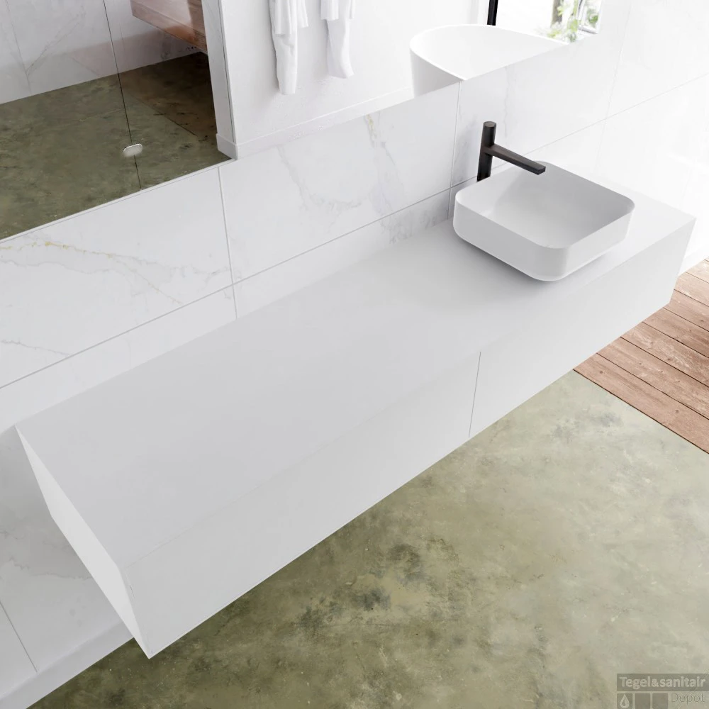 Badkamermeubelset Mondiaz LAGOM 180 cm met Topblad Rechtse Wastafel Solid Surface Opzetkom Binx Met 1 Kraangat Mat Wit (2 laden)