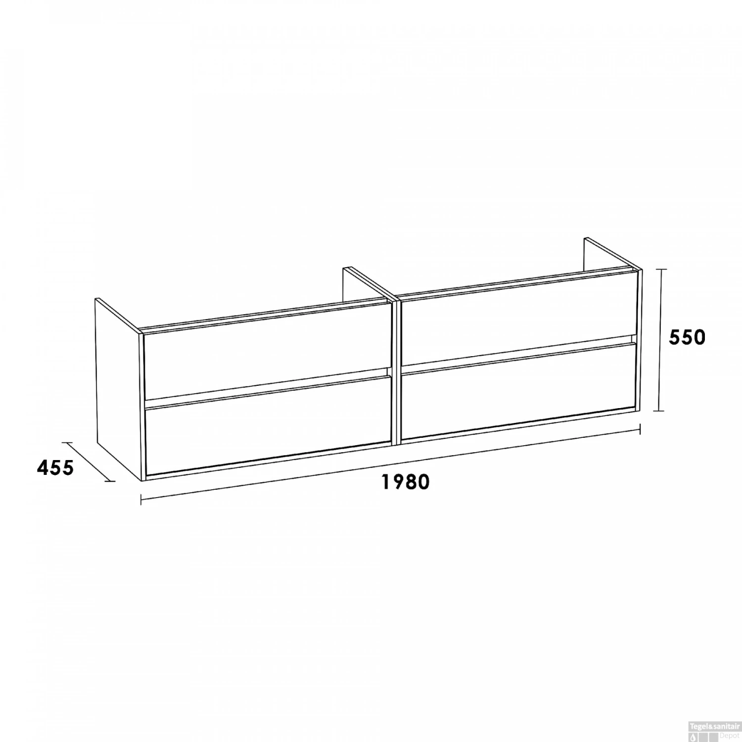 De onderkast is 200 cm breed, 55 cm hoog en 45.5 cm diep.