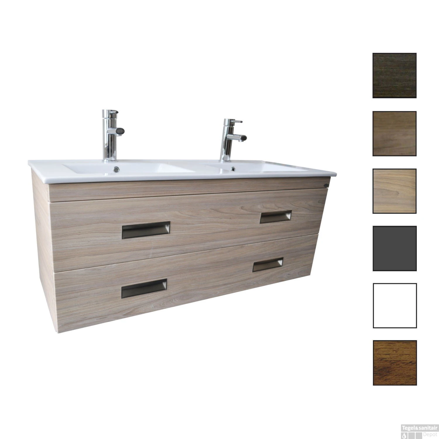 Badkamermeubelset Sanicare Q2 Twee Soft-Close Laden 120 cm Grey-Wood (spiegel optioneel)
