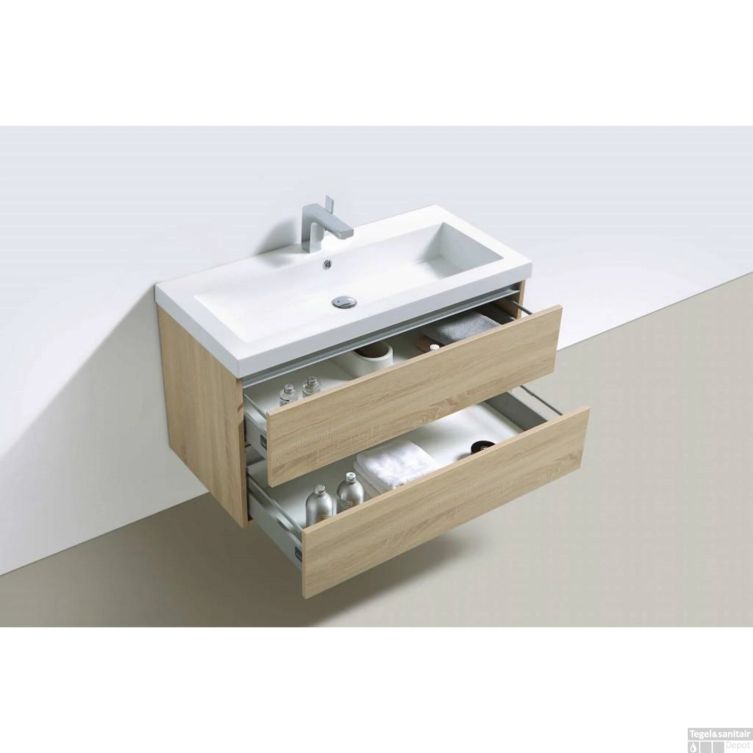 Badkamermeubelset Sanilux Trendline 100x47x50 cm 2 Kraangaten Light Wood