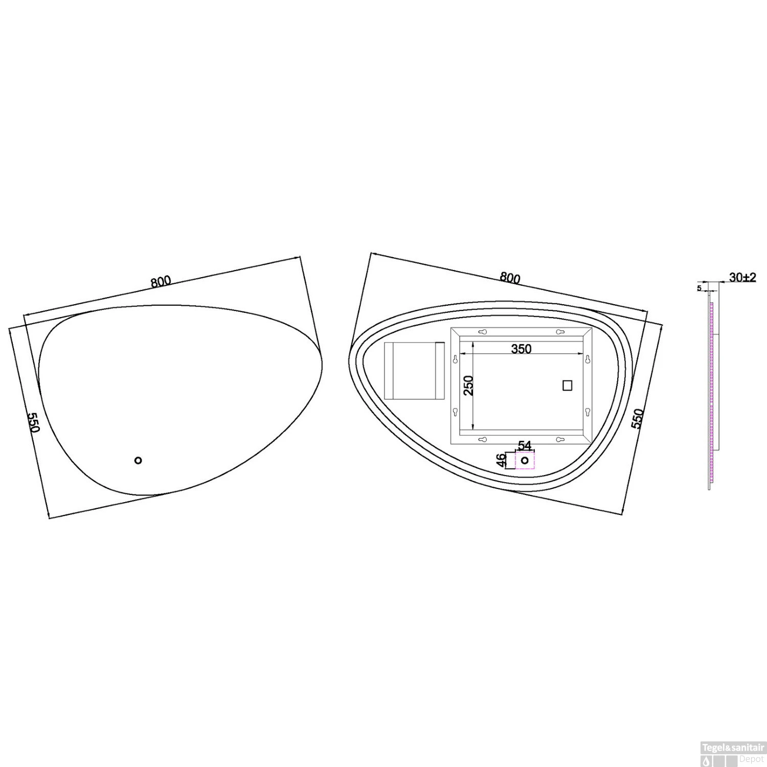 Specificaties Badkamerspiegel Boss & Wessing Luma Dimbare LED Verlichting Condensvrij 80×55 cm: