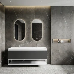 De Luma badkamerspiegel is voorzien van LED verlichting en is condensvrij! De geïntegreerde verlichting is handig voor als uw badkamer niet voldoende licht heeft of als u bijvoorbeeld ’s avonds niet een grote lamp wilt gebruiken. De backlight van de spiegel is dan voldoende om u klaar te maken voor het slapen. Een condensvrije spiegel is fijn voor als u ook na het douchen gebruik wilt maken van de spiegel. Onhandig doen met een handdoek om de spiegel condensvrij te maken is gelukkig niet meer nodig! Verder heeft de spiegel een organisch vorm met de afmeting 80×55 cm.