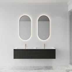 Spiegel Gliss Design Aura 50x100cm Koper Ovaal Met LED Verlichting & Geïntegreerde Spiegelverwarming