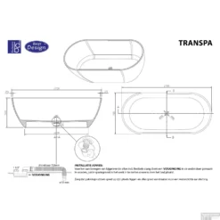 Specificaties BWS Half Vrijstaand Bad Solid Surface Type3 179×84.5×57.5 cm Mat Wit: