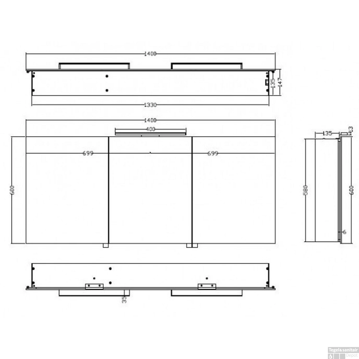 Specificaties BWS LED Spiegelkast Luxe Aluminium 140x60x14 cm :