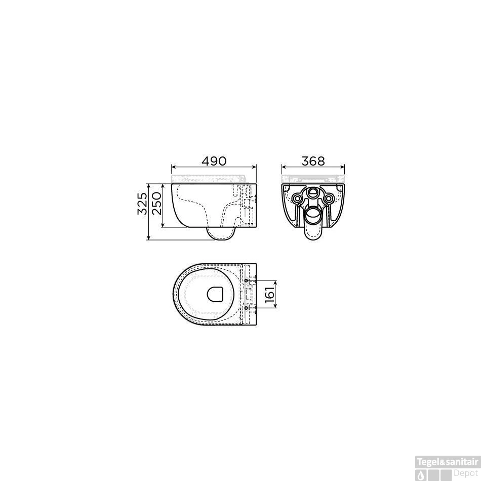 Specificaties Clou Hammock Wandtoilet 37x49x38cm Mat Zwart Keramiek versie 49cm: