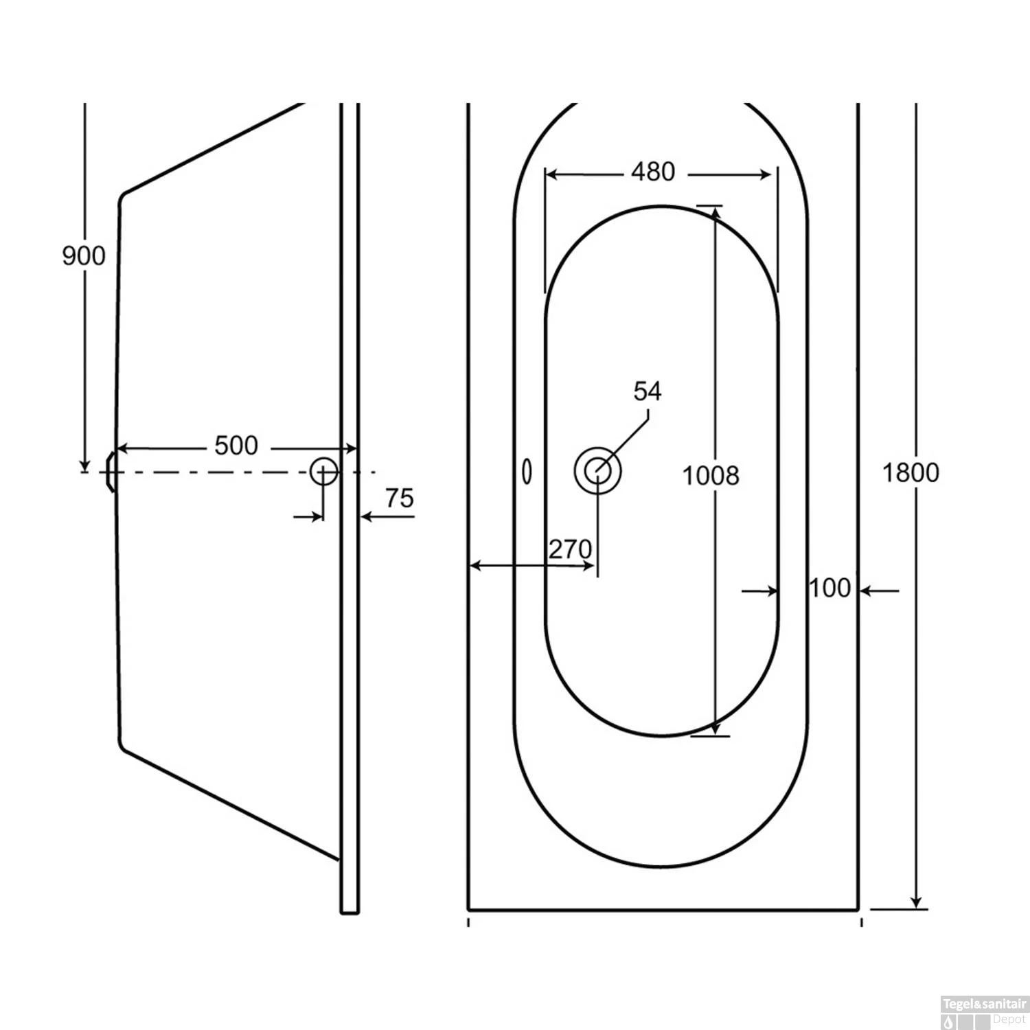 Specificaties Extra diep ligbad 180x80x49 cm: