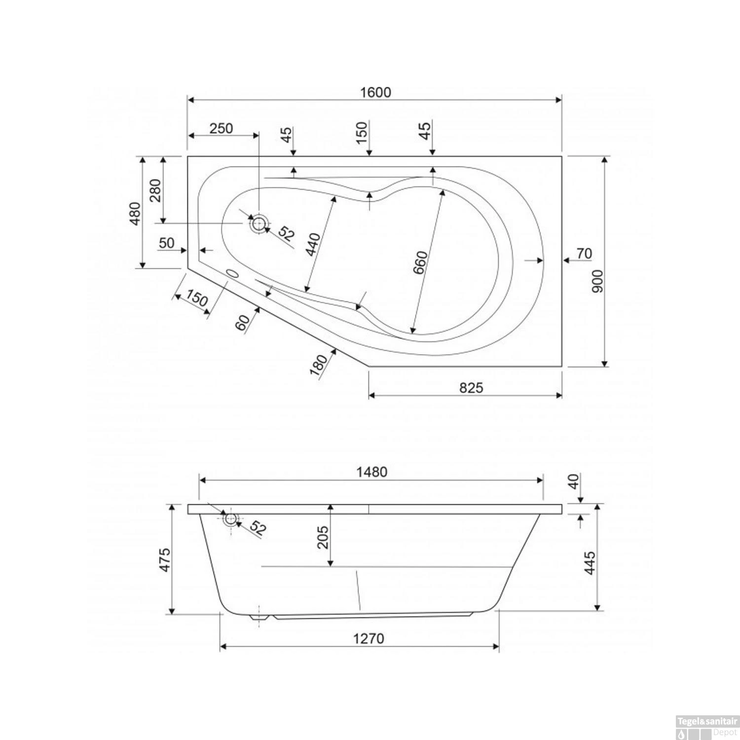 Hoekbad Wisa Tirano 160x90x47.5 cm Rechts Wit