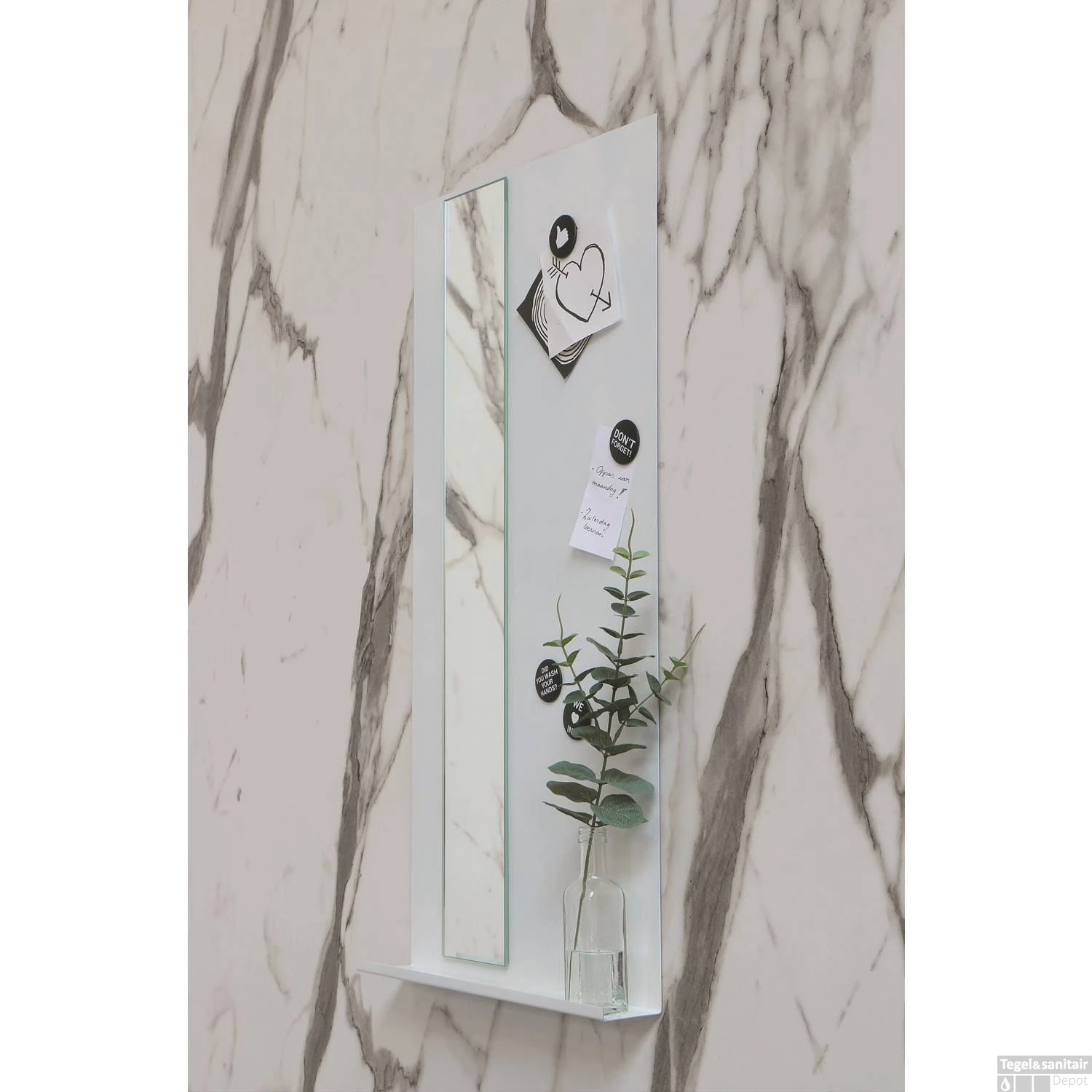 INK Fonteinplanchet Note Staal Glans Wit 36×72 cm Inclusief Ronde Spiegel Helder Glas 32 cm