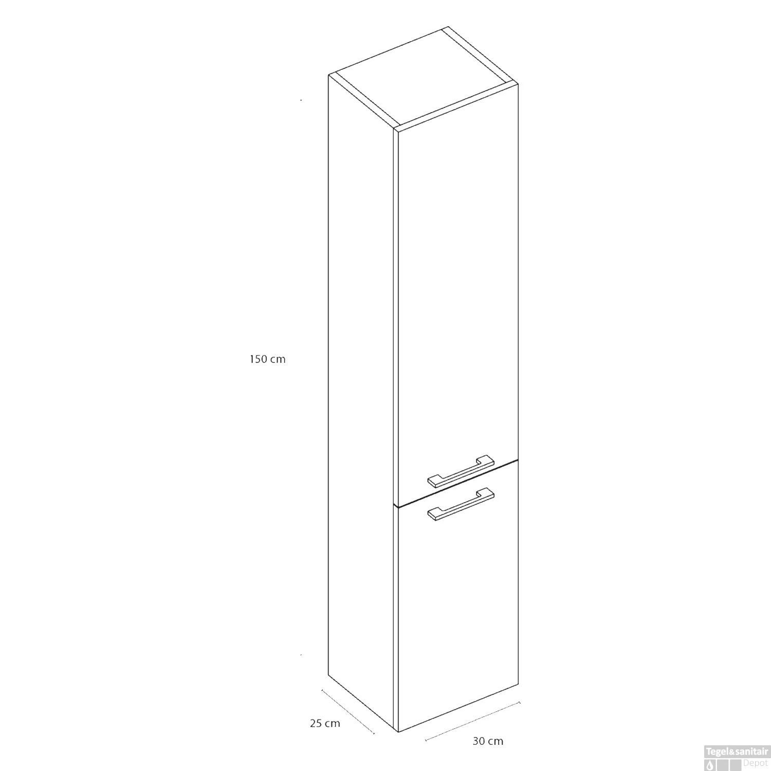Specificaties Kolomkast Differnz Somero 150x30x25 cm Links-Rechts Wit: