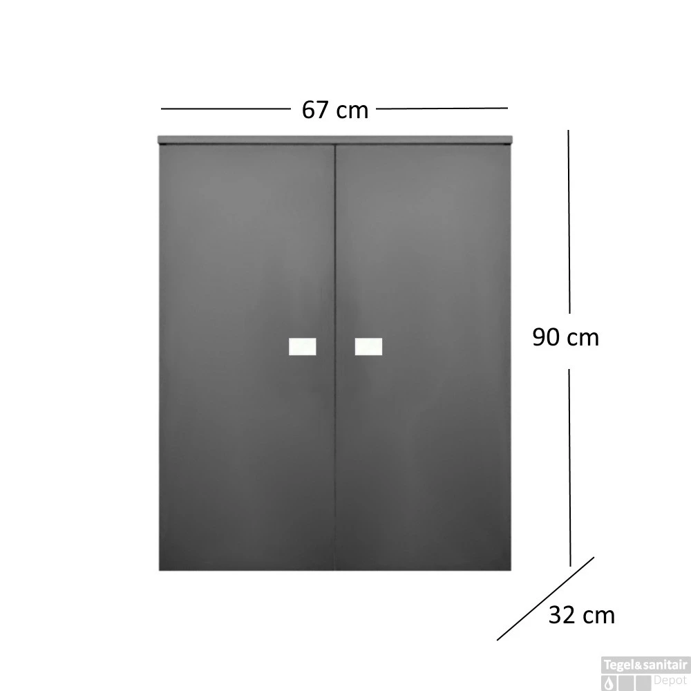 De half hoge kolomkast heeft een hoogte van 90 cm, een breedte van 67 cm en een diepte van 32 cm. De kast valt perfect te combineren met andere producten uit de Q5-serie van Sanicare. De kolomkast is afgewerkt in de kleur schots-eiken.