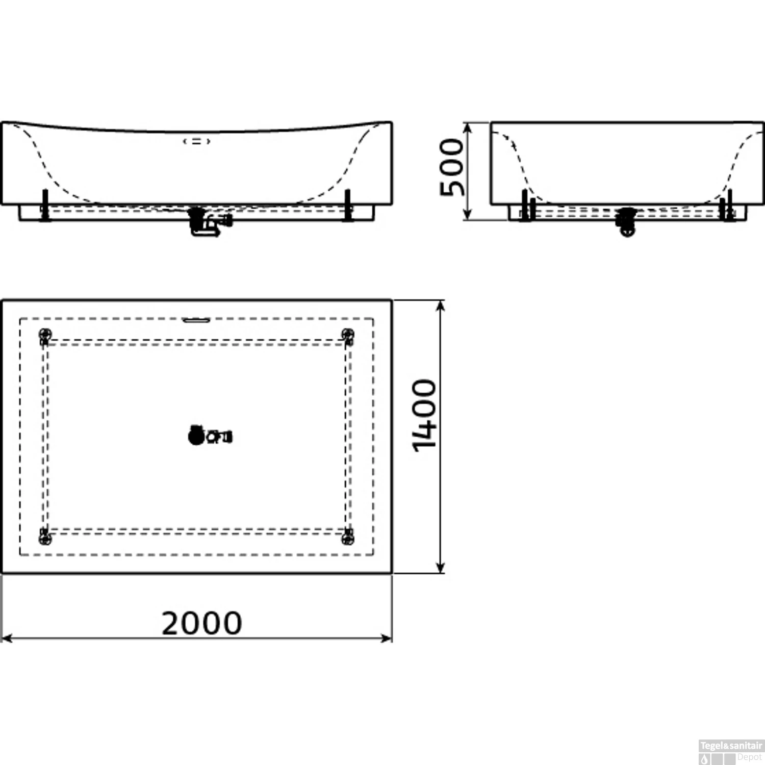 Specificaties Ligbad Clou Hammock 200x140x50cm Acryl Glans Wit (Vrijstaand):