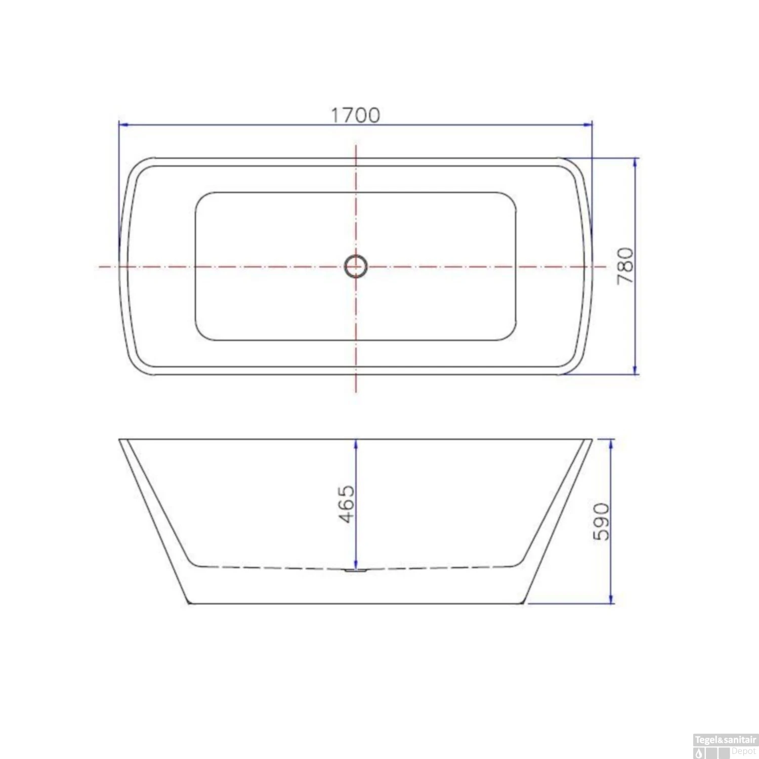 Ligbad Larx Wiesbaden Vrijstaand Vierkant Acryl Inclusief Waste 170×78 cm Wit