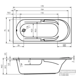 Specificaties Ligbad NJOY Thalia 170×80 cm Acryl Mat Wit inclusief Afvoer en Badpotenset: