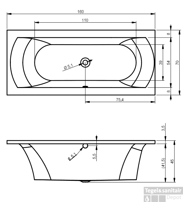 - Exclusief badpoten en badafvoer